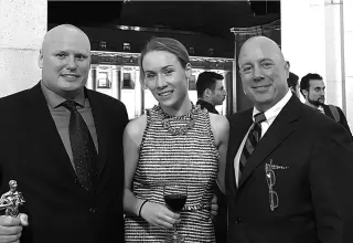Viroment CEO Paul Koenig, left, with Katherine McDonald, division director of the Cleantech Open, and Bob Thorbus, CEO of Arc Suppression Technologies, in San Francisco for the 2015 Cleantech Open.